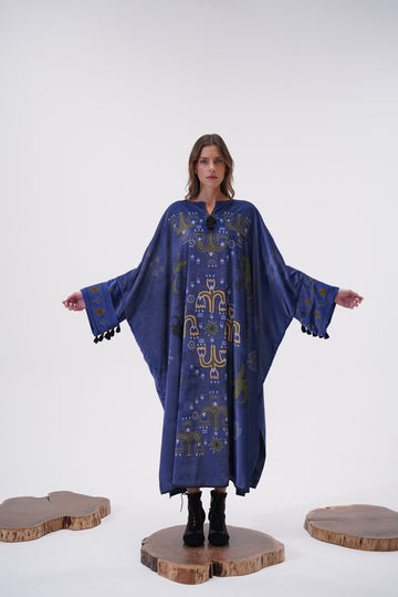 Pre-order: 14 to 20 working days. A striking contrast of deep royal blue relaxed elongated...