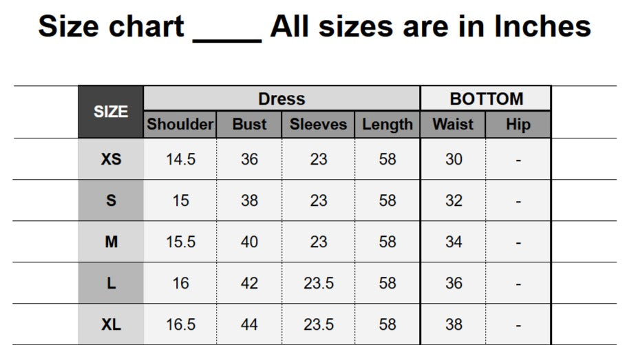 - Please note that all made-to-order outfits are custom-made specifically for you and therefore non-refundable. We do not accept returns on these items. However, if you require a different size, we are happy to offer a one-time size exchange—subject to availability.