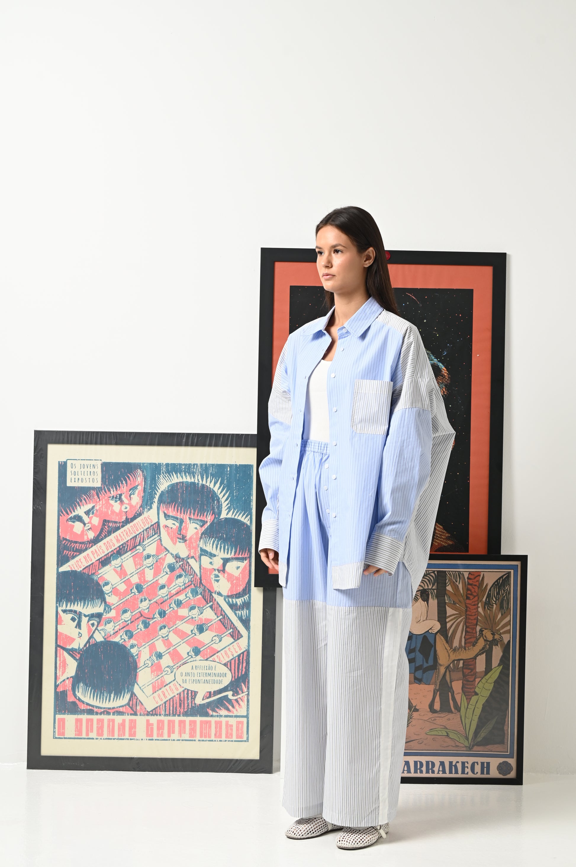 Stripe Pattern Oversized Shirt with Pocket + Loose Pant with Pockets Set.