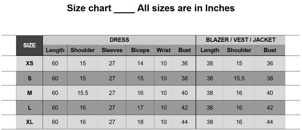 Double Check Sizes: We strongly encourage you to carefully review the size chart and double-check your measurements before placing an order.