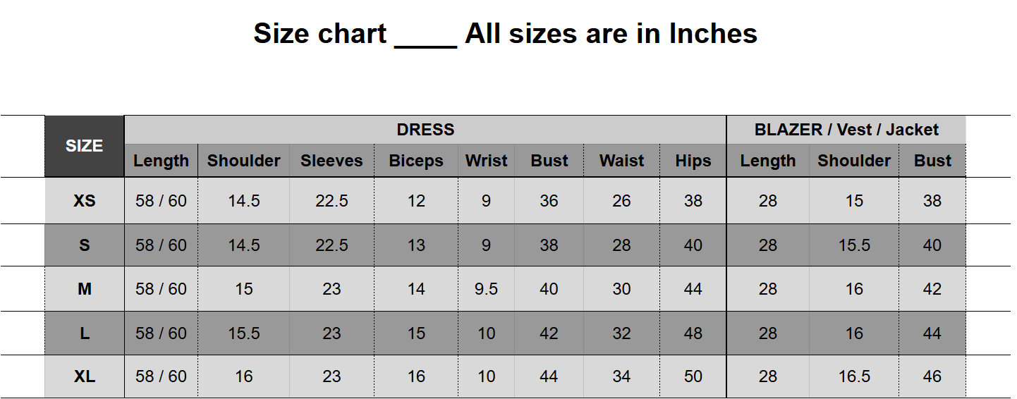 Double Check Sizes: We strongly encourage you to carefully review the size chart and double-check your measurements before placing an order.