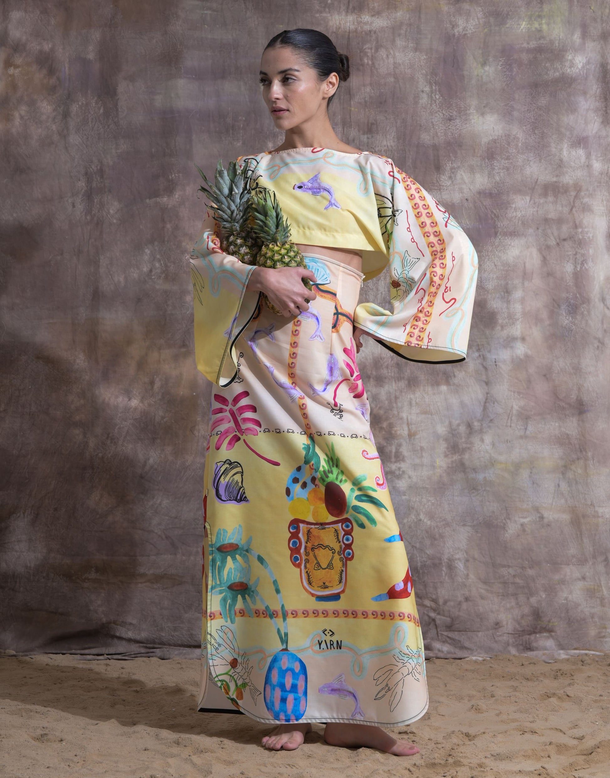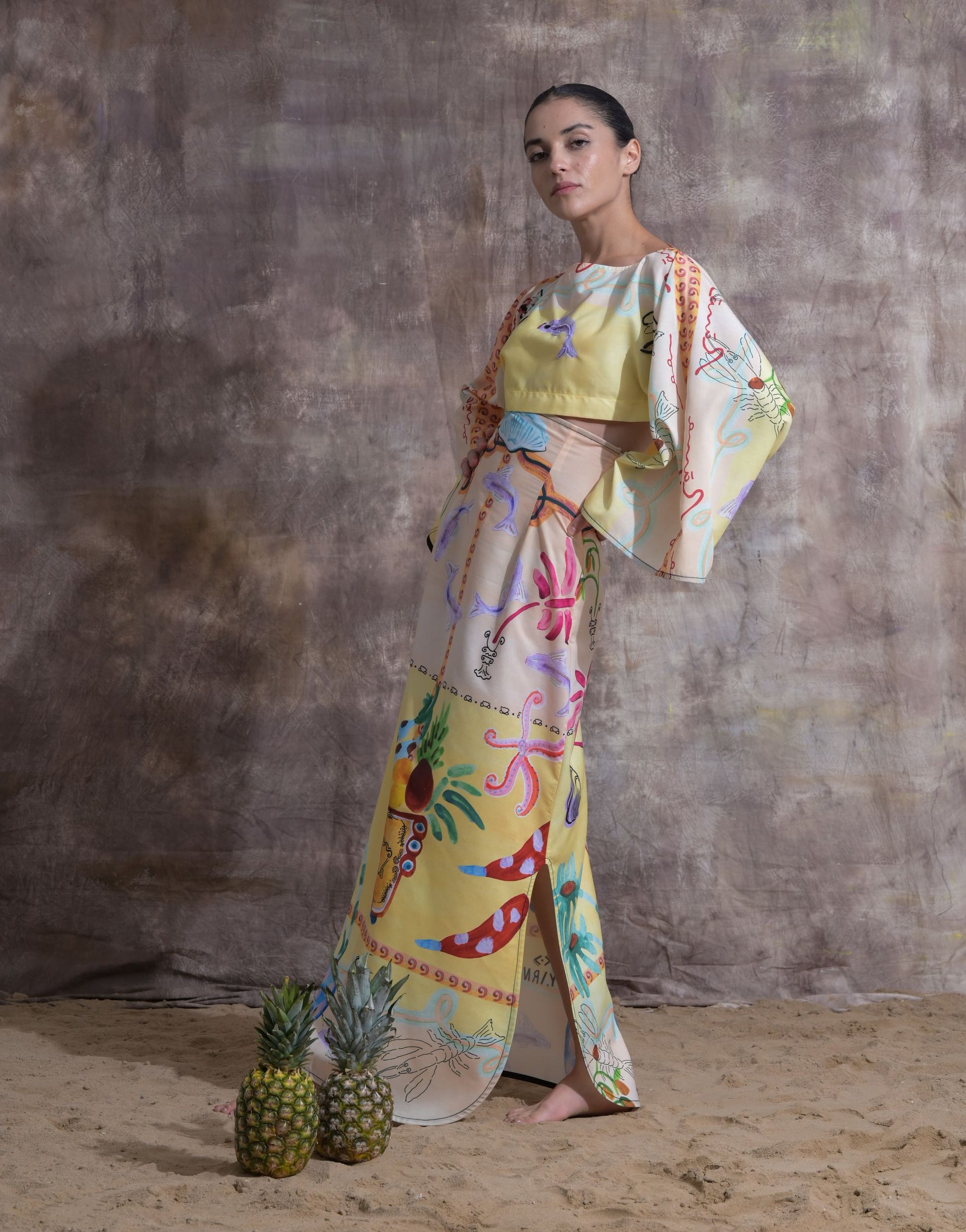 High-waisted cotton skirt with SeaWorld motifs paired with an embroidered cropped top. Embellished with beading for a touch of sparkle.