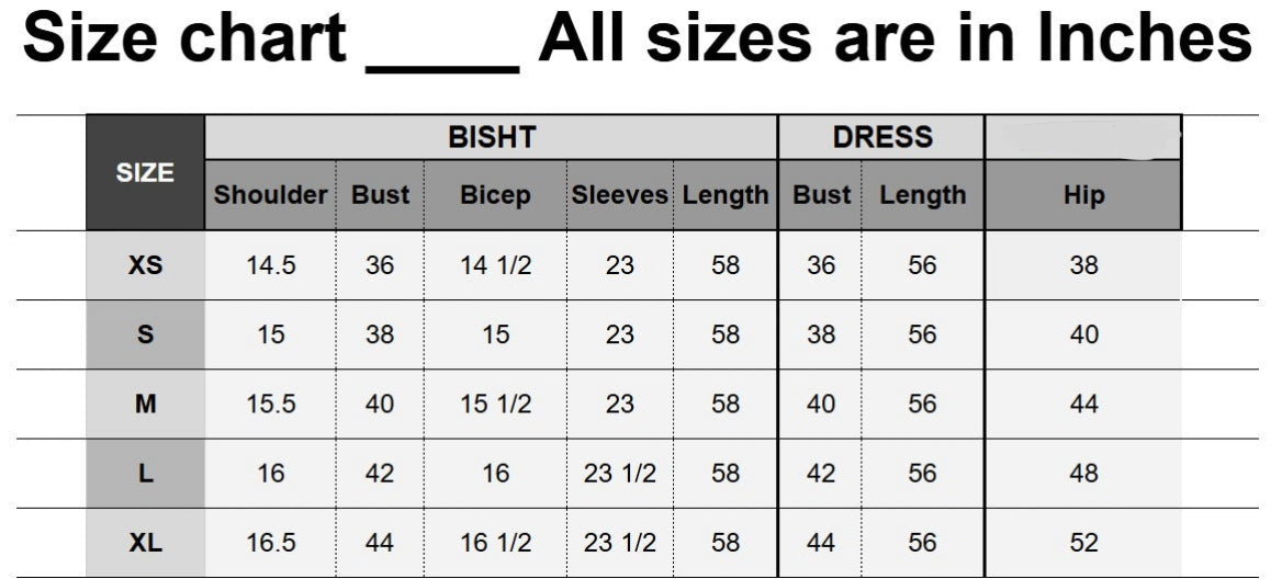 - Please note that all made-to-order outfits are custom-made specifically for you and therefore non-refundable. We do not accept returns on these items. However, if you require a different size, we are happy to offer a one-time size exchange—subject to availability.